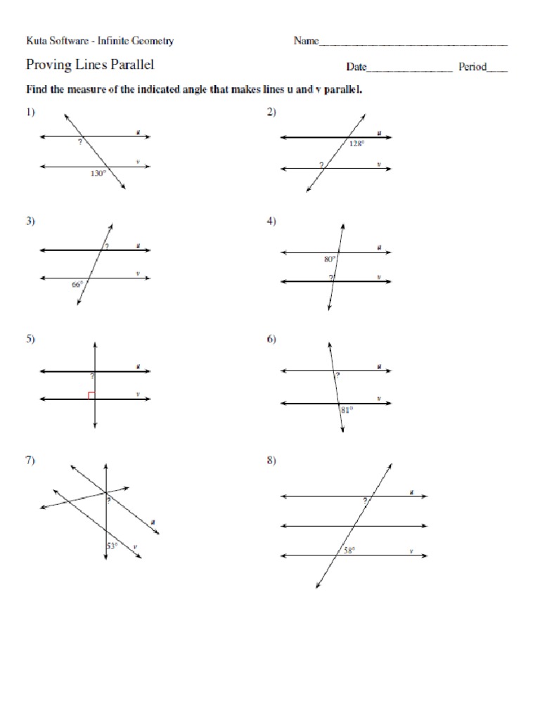 What are parallel and perpendicular lines? Sometimes they're going upwards, downwards let's find out! From the given sketch, analyze the transversal line. Some of the worksheets for this concept are find the measure of the indicated angle that makes lines u, sections proving lines then we can state, work geometry date proving lines parallel, 3 3 proving lines. Want to help support the site and remove the ads? Yes no was this document useful for you? 1 2 3 4 5 6 7 8 1. In this worksheet, students complete two geometry proofs. Two lines are parallel if they have the same slopes. Proving lines parallel worksheet help? Which equation is enough information to prove that lines m and n are parallel lines cut by transversal p? Worksheets are find the measure of the indicated angle that makes lines u, work geometry date proving lines parallel, , name period gl lines transversals, work section 3 2 angles and parallel lines, 3 parallel lines and transversals. If parallel lines are horizontal, label: