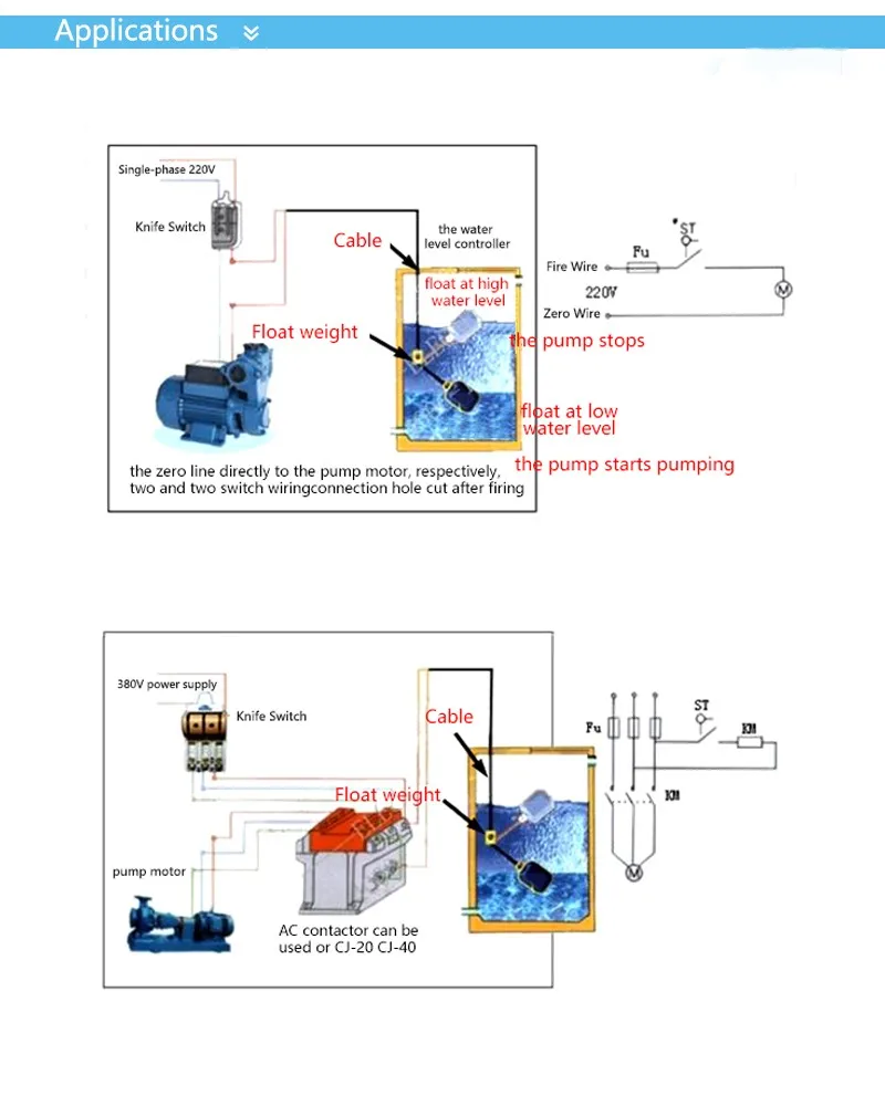 Float switch connection single phase water pumpwhat is float switch?float switch is a type of level sensor a device used to detect the level of liquid. The tether length illustrated in the figure can be minimized to 3 inches from the float. Float switch control wiring diagram. Remember that what you're wiring is a means of turning things on and off. Assemble gasket (by , clear hole in tank side, from inside of tank.